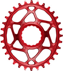 Plato absoluteBLACK Ovalado Estrecho-Ancho de Montaje Directo - 32 dientes CINCH Montaje Directo con Desplazamiento de 3 mm Rojo. Los platos absoluteBLACK Ovalados de Montaje Directo 1x para CINCH están diseñados para bielas RaceFace que utilizan el sistema CINCH. Los platos de montaje directo ofrecen un ahorro de peso significativo en comparación con una combinación estándar de araña y plato. Están fabricados en aluminio 7075 mecanizado por CNC y cuentan con un acabado anodizado para una durabilidad excepcional. La ovalidad se ha optimizado para cada tamaño de plato, con un rango de 10,2 a 14,4 %, con una sincronización de 110,5 a 116,3° después del PMS (punto muerto superior).