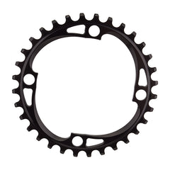 Plato absoluteBLACK Redondo 104 BCD - 32 dientes, 104 BCD, 4 tornillos, Estrecho-Ancho, Negro. Los platos absoluteBLACK Redondo 104/64 BCD están diseñados para usarse con todos los juegos de bielas con interfaz 104/64 BCD, incluyendo Shimano SRAM RaceFace FSA y más. Estos platos permiten usar un sistema 1x sin problemas de retención de la cadena. El perfil dentado, especialmente diseñado, mantiene la cadena ajustada, permitiéndole dejar el guardacadenas en el garaje. Están fabricados en aluminio 7075 mecanizado en CNC y cuentan con un acabado anodizado para una durabilidad excepcional.