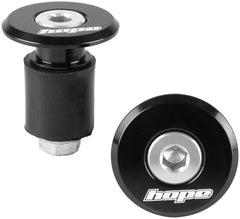 Tapones de manillar Hope Grip Doctor, negros. Fabricados en aluminio mecanizado y grabados a láser, están disponibles en varios colores para complementar el resto del kit de acabado de tu moto.