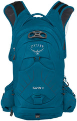 Mochila de hidratación Osprey Raven 10 - Talla única, Azul Waterfront. La mochila de hidratación Osprey Raven para mujer es una mochila premium para bicicleta de montaña con características diseñadas específicamente para mantenerte en movimiento en el sendero. En caso de pinchazo, accidente o golpe, el acceso inteligente a los bolsillos de almacenamiento dedicados te permite volver a la bicicleta más rápido. Esta mochila lo tiene todo: sistema LidLock y fijación para casco integral, depósito hidráulico y bolsa de herramientas desplegable para ajustes previos a la salida o reparaciones posteriores a un accidente. El panel trasero Airscape ofrece libertad de movimiento y ventilación para una comodidad durante todo el día.