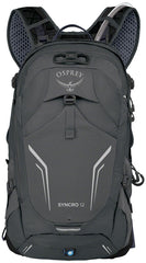 Osprey Syncro 12 Men's Hydration Pack - One Size, Coal Gray. The Osprey Syncro hydration pack delivers everything that’s ever been expected from a top-tier bike pack, plus an AirSpeed™ back panel that transfers weight to the hips. When you're riding, you don't want to think about your pack, and the Syncro's streamlined profile does exactly that, no matter how you pedal. The Syncro delivers maximum ventilation and hydration. It's the perfect option for desert heat or inescapably humid climes.