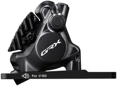 Shimano GRX BR-RX820 Hydraulic Disc Brake Caliper - Front Flat-Mount W/Bracket for 140/160mm Rotor (Assembled for 160mm). The Shimano GRX BR-RX820 2-piston disc brake caliper brings a high level of control to gravel cycling with enhanced modulation and a quick initial braking point. Despite its smaller construction the system is exceptionally quiet and easy to maintain.