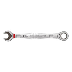 Wera 6000 Joker Ratcheting Combination Wrench - 17mm. High quality metric combination ratchet wrench by Wera. Everything that a wrench has to be able to do. And a whole lot more. Faster better stylish. Yes a real Joker. The new generation of combination ratchet wrenches. Suitable for hexagon socket screws bolts or nuts. Comes with holding function thanks to the metal plate in the jaw which reduces the risk of dropping nuts and bolts. The replaceable metal plate in the jaw secures nuts and bolts with its extra hard teeth and reduces the danger of slipping. The integrated limit stop prevents any slipping around the bolt head and allows higher torque to be applied