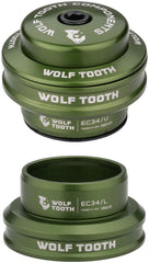 Wolf Tooth Premium Headset - EC34/EC34 Olive. Wolf Tooth Premium headsets are machined out of aircraft grade aluminum and feature high-end bearings made by Enduro. They are engineered to use the largest possible ball size and are filled with high-pressure waterproof lubricant. A pair of dual-lip seals ride in micro-grooves to keep out water and debris.